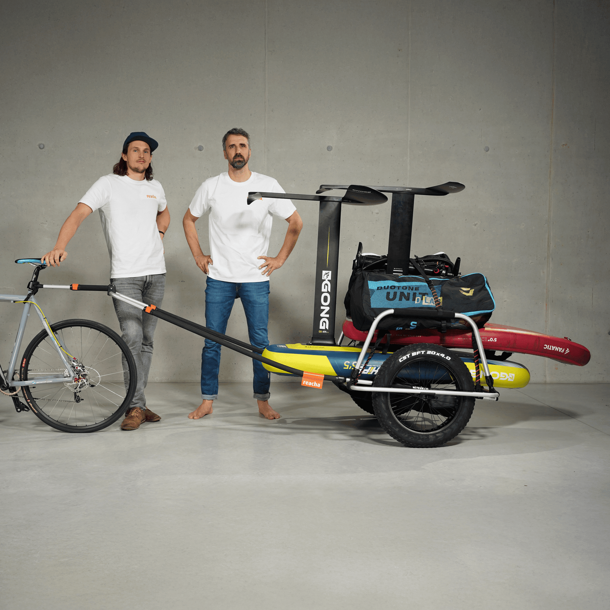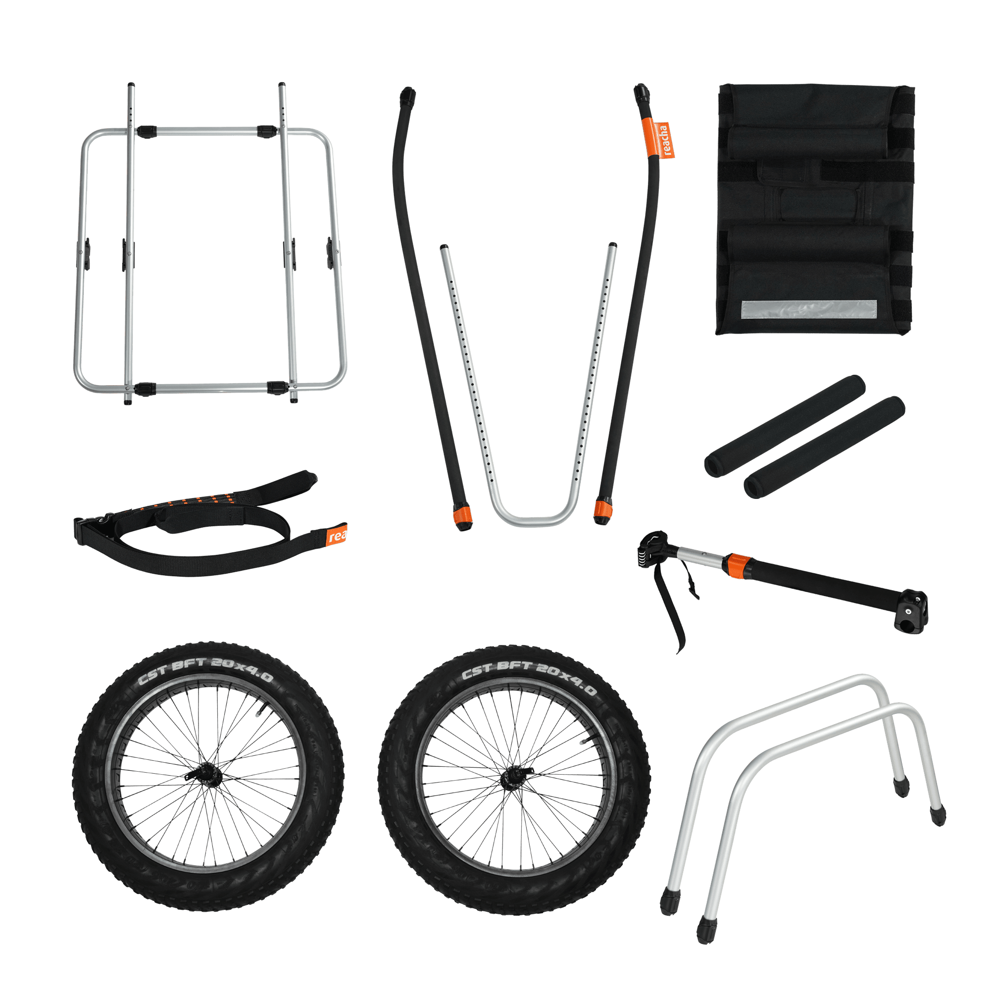 Reacha Sport Beach (10101404): modularer Handwagen & Fahrradanhänger mit ausziehbarer Deichsel und verstellbarem Rahmen für lange oder sperrige Ausrüstung bis 4,5 m. Mit Schnappverschluss-System (werkzeuglos), Textil-Gepäckträger und schnell montierbaren Fat Tires.