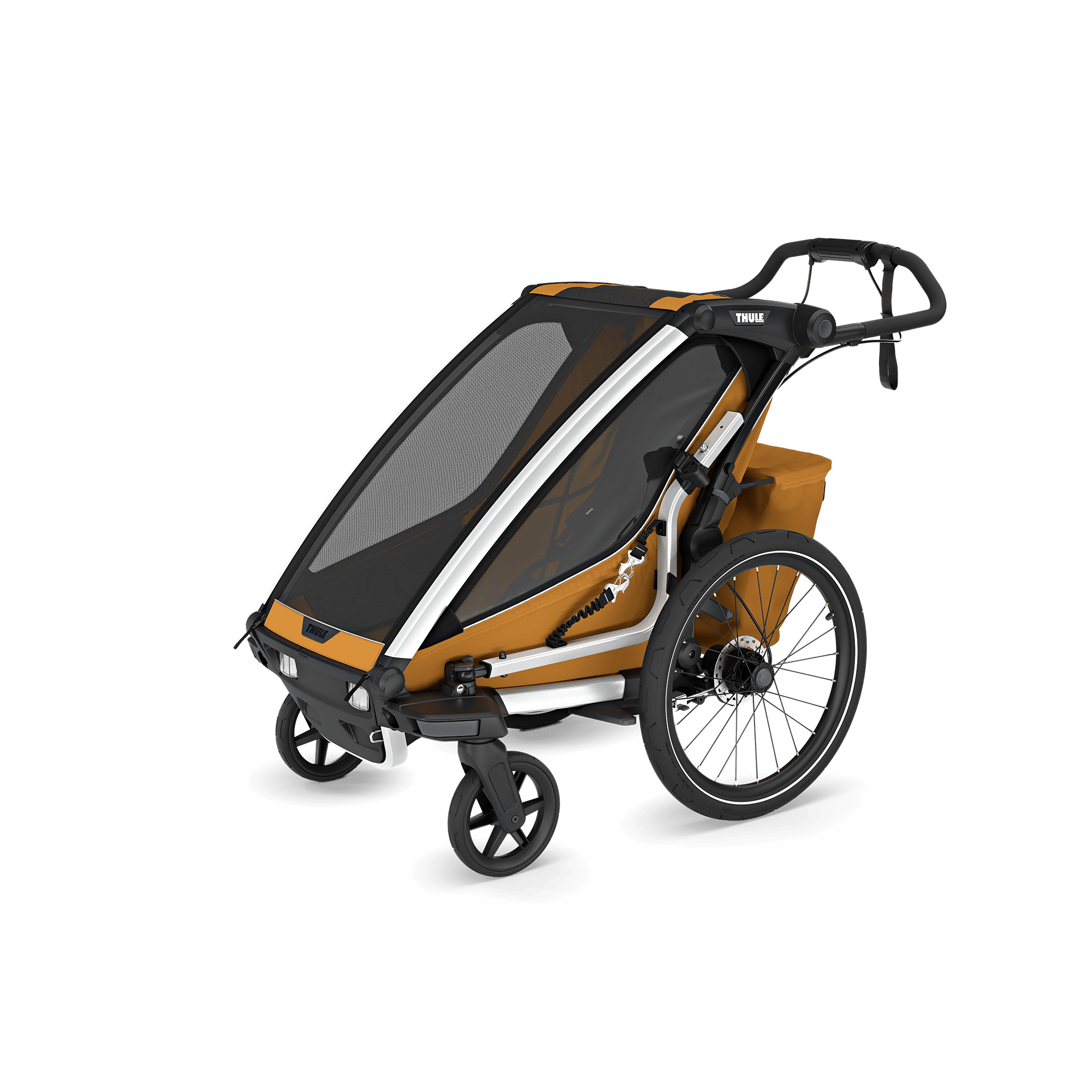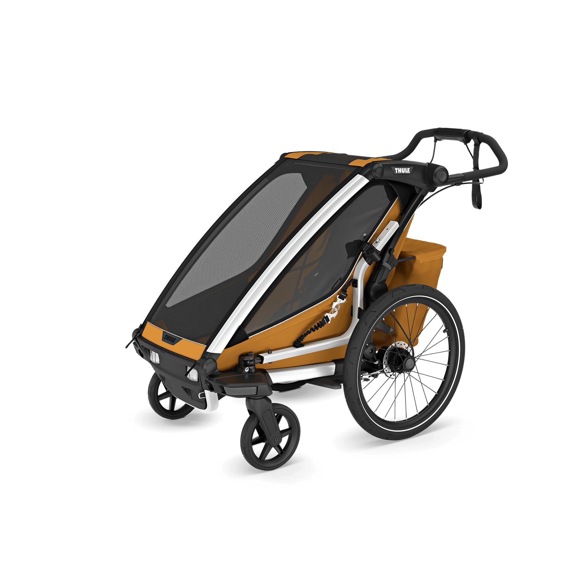 Thule Chariot Sport 2 single (10201032) in Natural Gold: 4-in-1 Multisport-Anhänger (Radfahren & Spazieren inklusive; Ski & Gelände mit separaten Kits), mit integrierter LED-Beleuchtung (Powerbank separat), Scheibenbremsen, Liegesitz, verstellbarer Federung, XL-Stauraum sowie Regenhaube & Sonnendach.