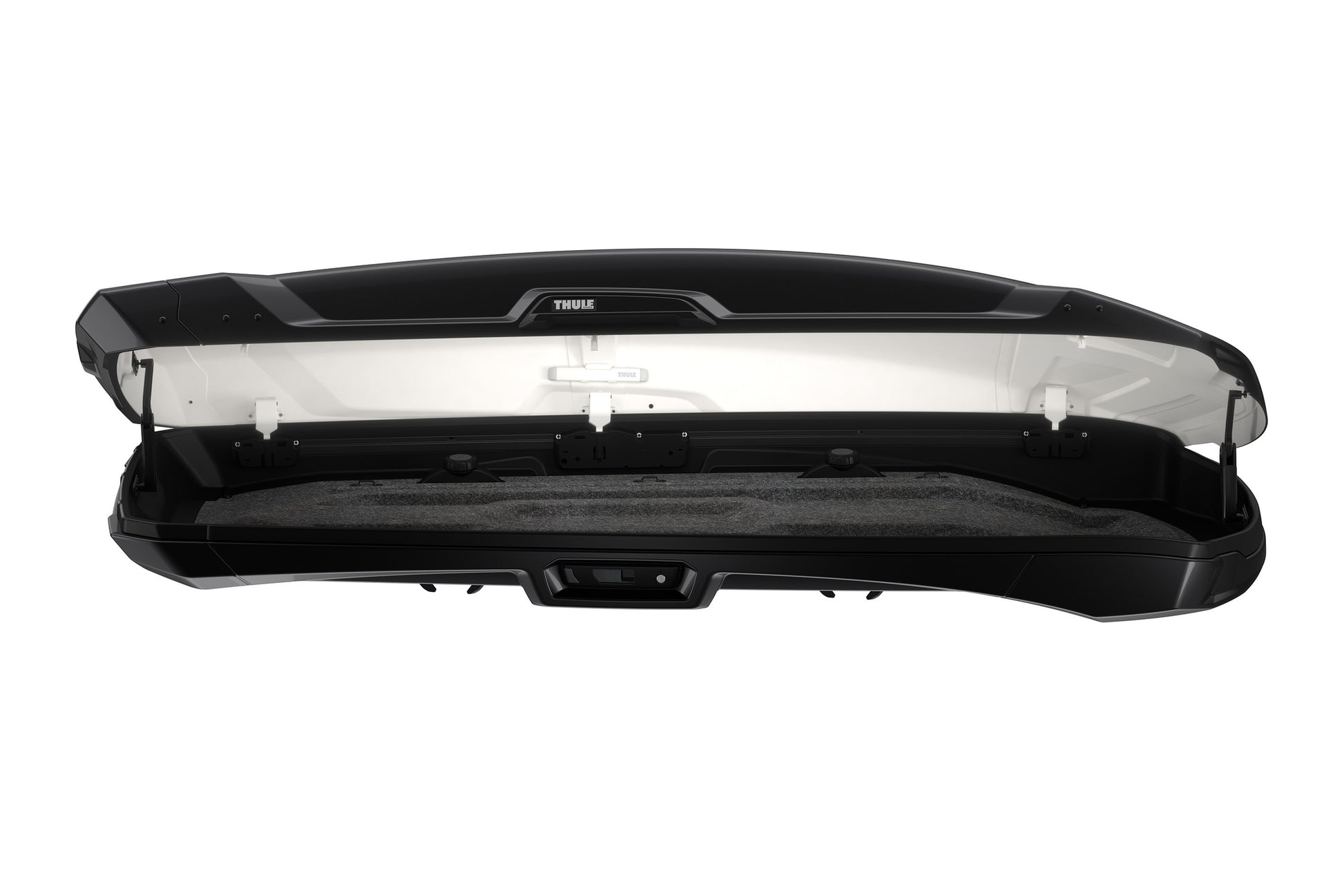 Thule Vector M (613200): Premium-Dachbox mit 360 L Volumen, Filz-Innenausstattung, integrierter LED-Beleuchtung, PowerClick-Schnellmontage, SlideLock-Verriegelung und beidseitiger Öffnung – inklusive Thule Box Lid Cover.